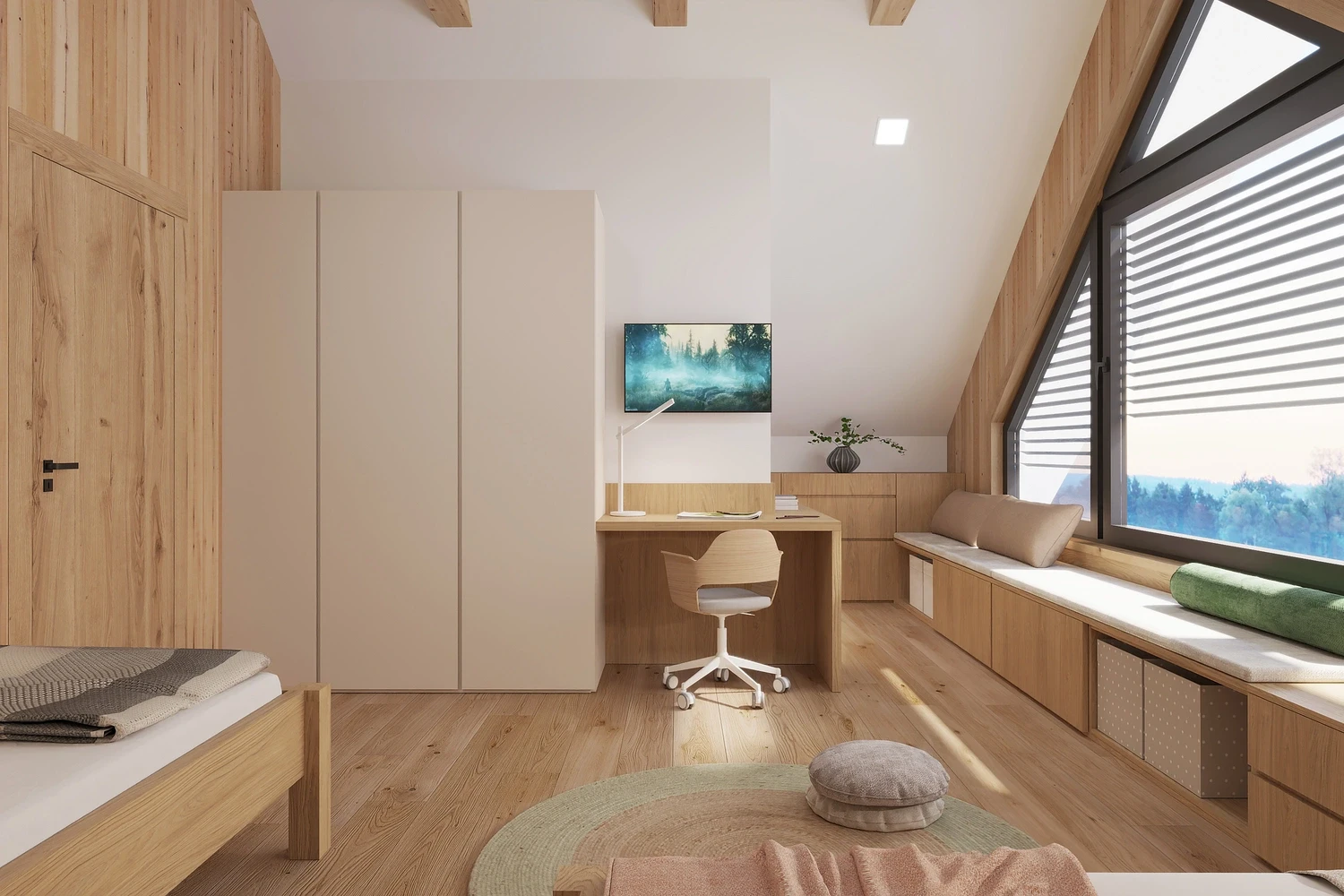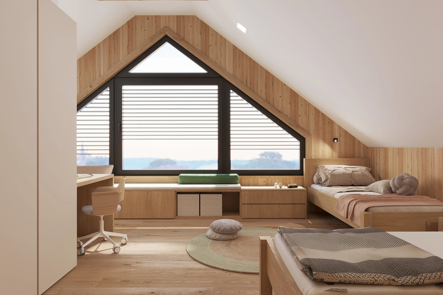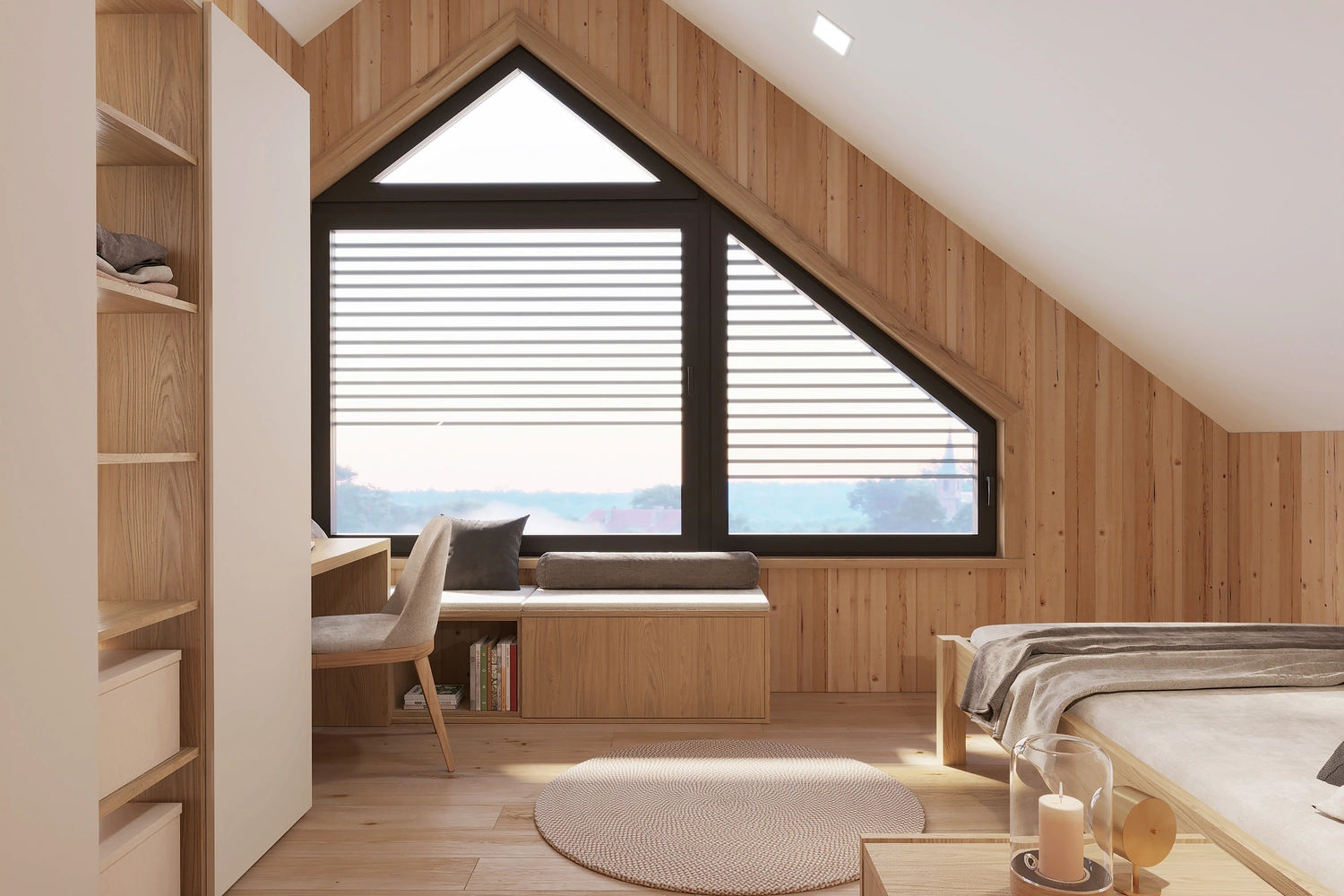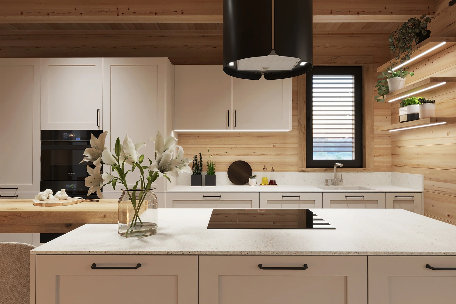 Interiér chaty na Makove sme navrhli moderne s prvkami vidieckeho štýlu. Chata vyžaruje útulnú atmosféru vďaka dreveným konštrukciám a čistým líniám interiérových prvkov. Interiér drevenej chaty spája modernosť s tradičnou atmosférou drevenice.