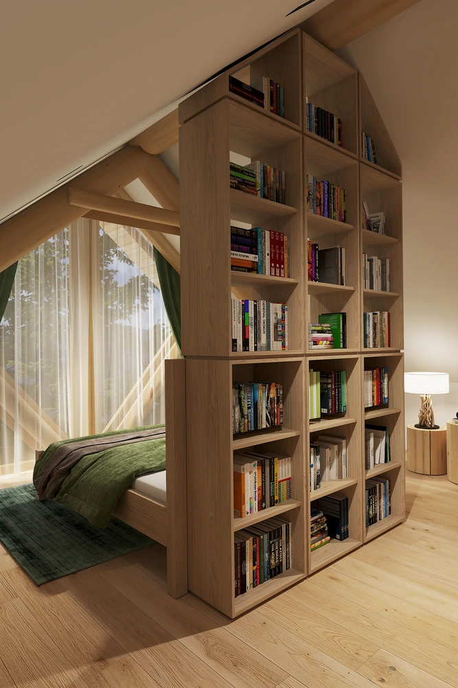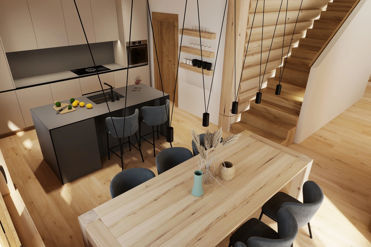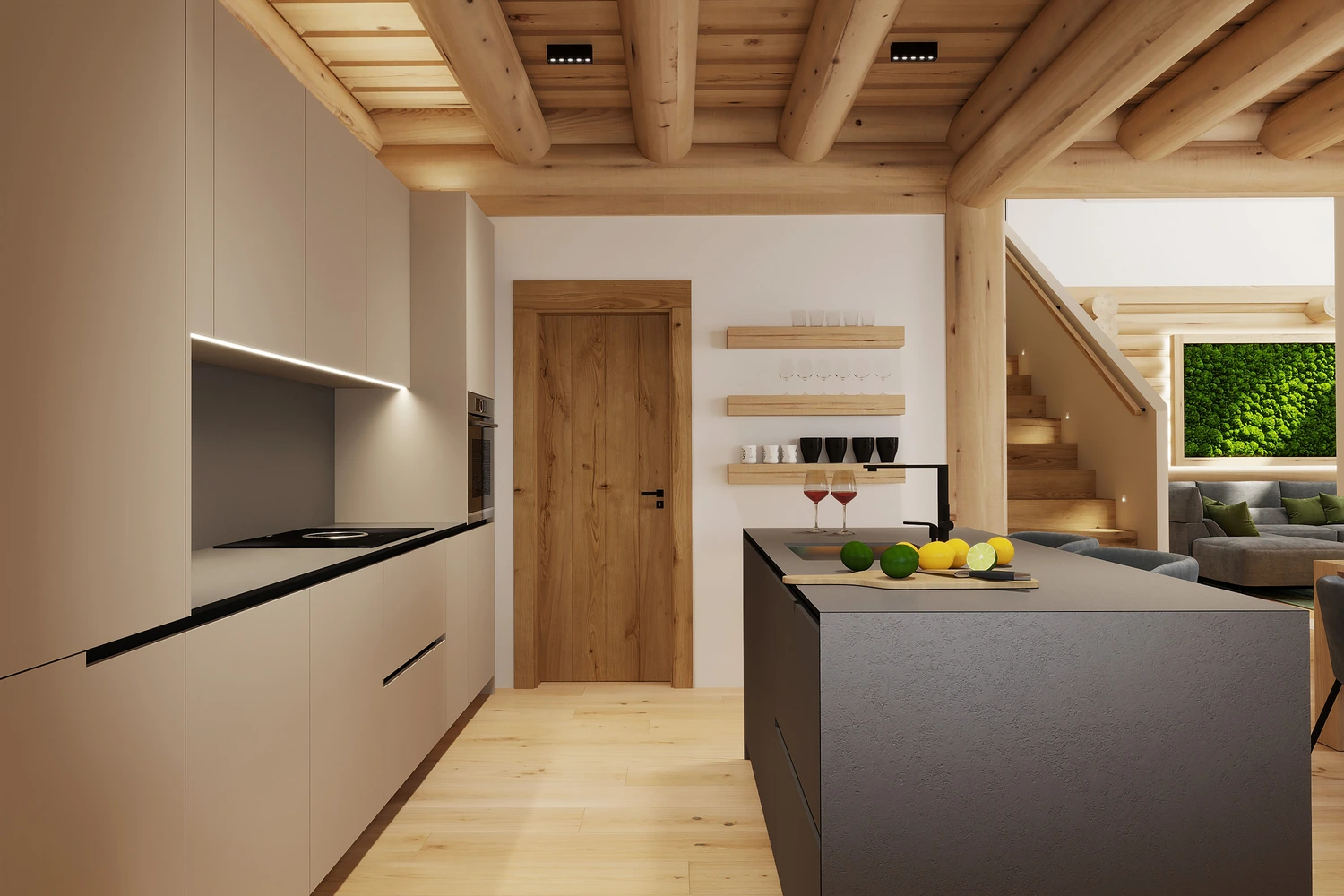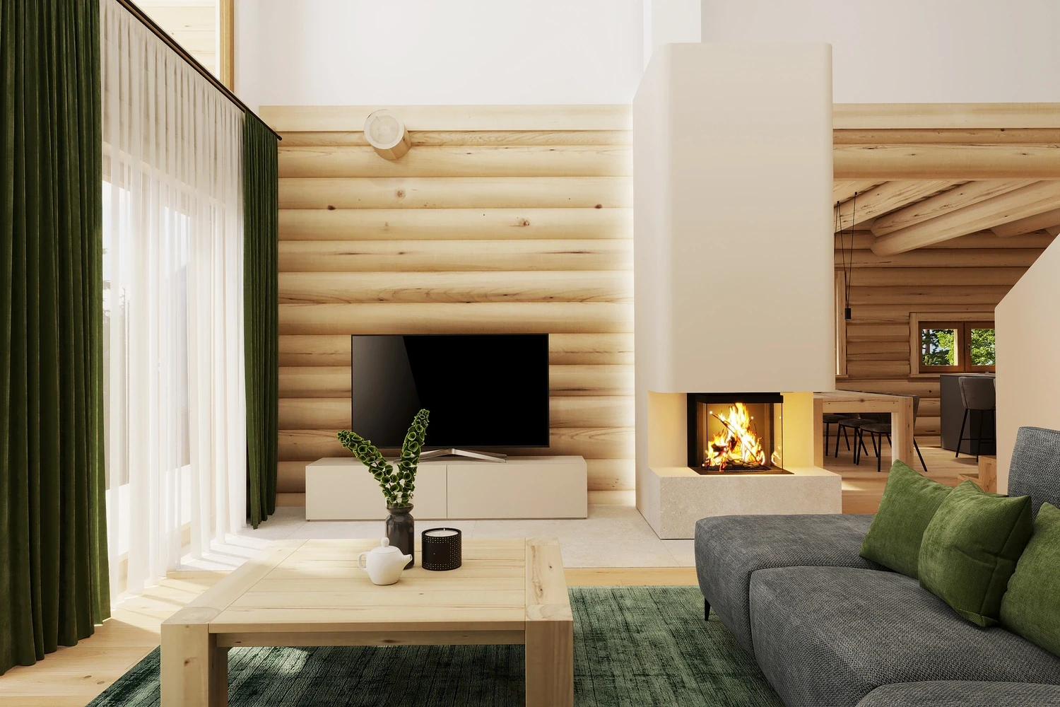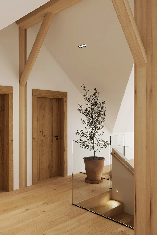 Luxusný zrub v Levoči - projekt interiéru vyniká vďaka otvoreným priestorom obývačky s galériou. Pri návrhu interiéru sme kombinovali prírodné materiály drevostavby s moderným dizajnom, čím sme vytvorili priestor, ktorý spája tradíciu a dizajn.