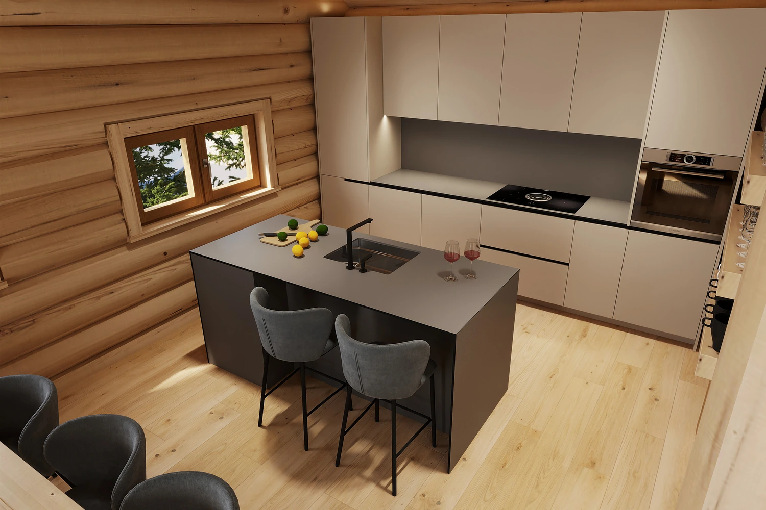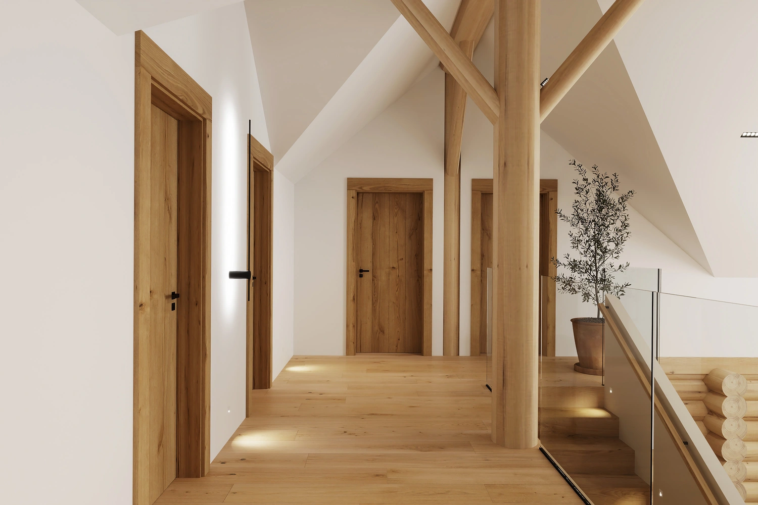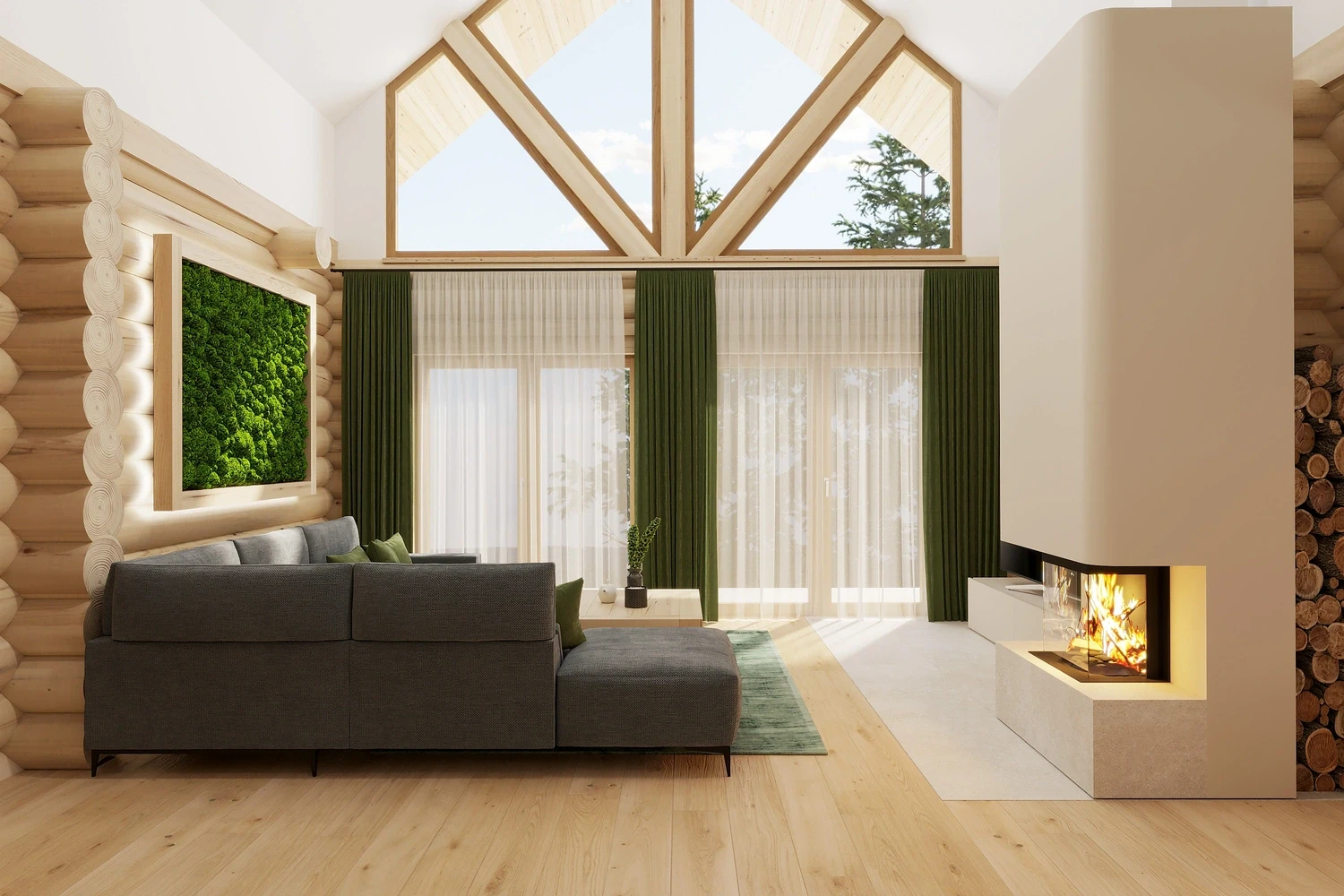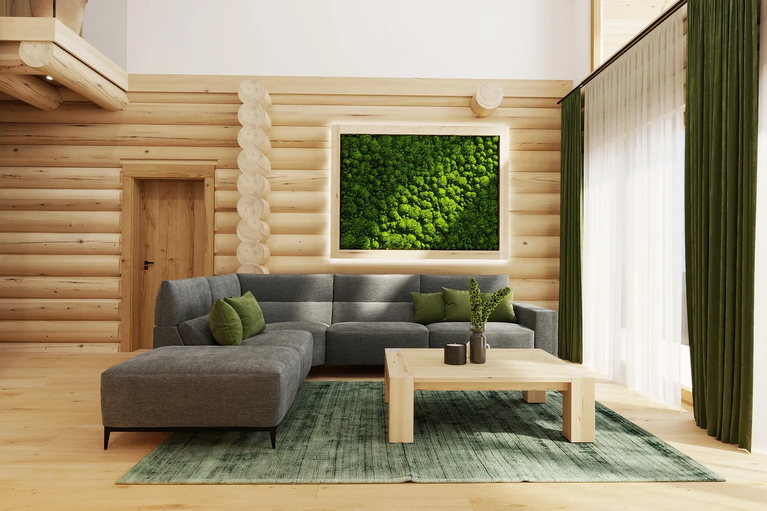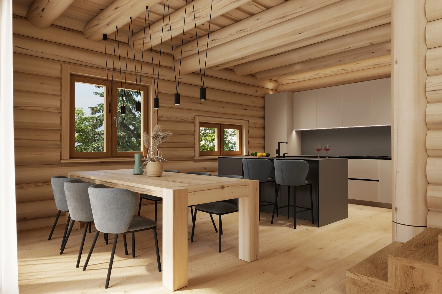 Luxusný zrub v Levoči - projekt interiéru vyniká vďaka otvoreným priestorom obývačky s galériou. Pri návrhu interiéru sme kombinovali prírodné materiály drevostavby s moderným dizajnom, čím sme vytvorili priestor, ktorý spája tradíciu a dizajn.