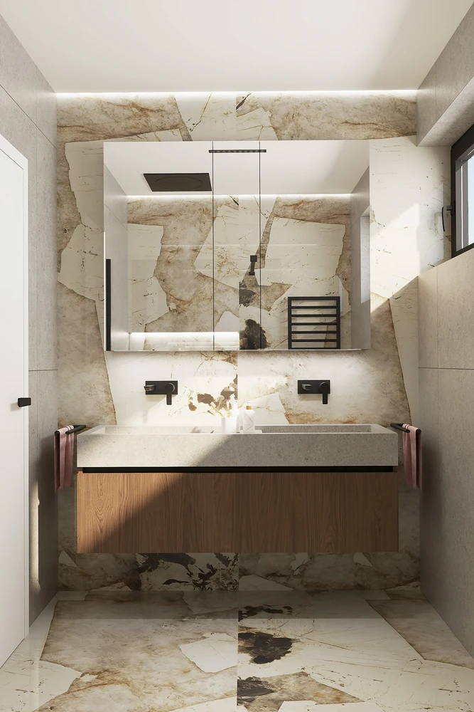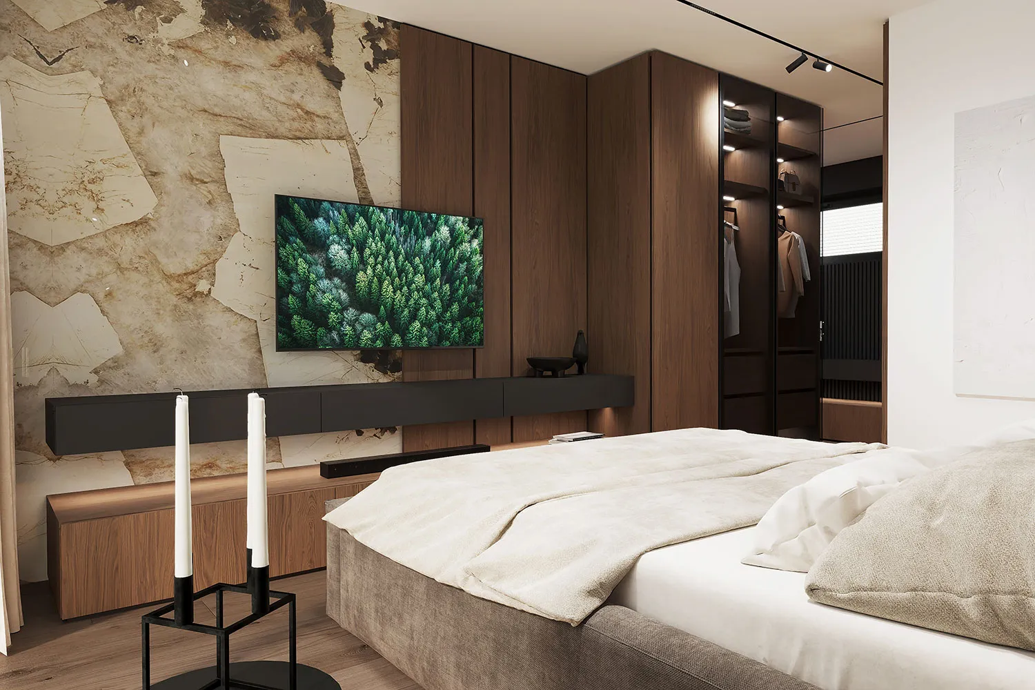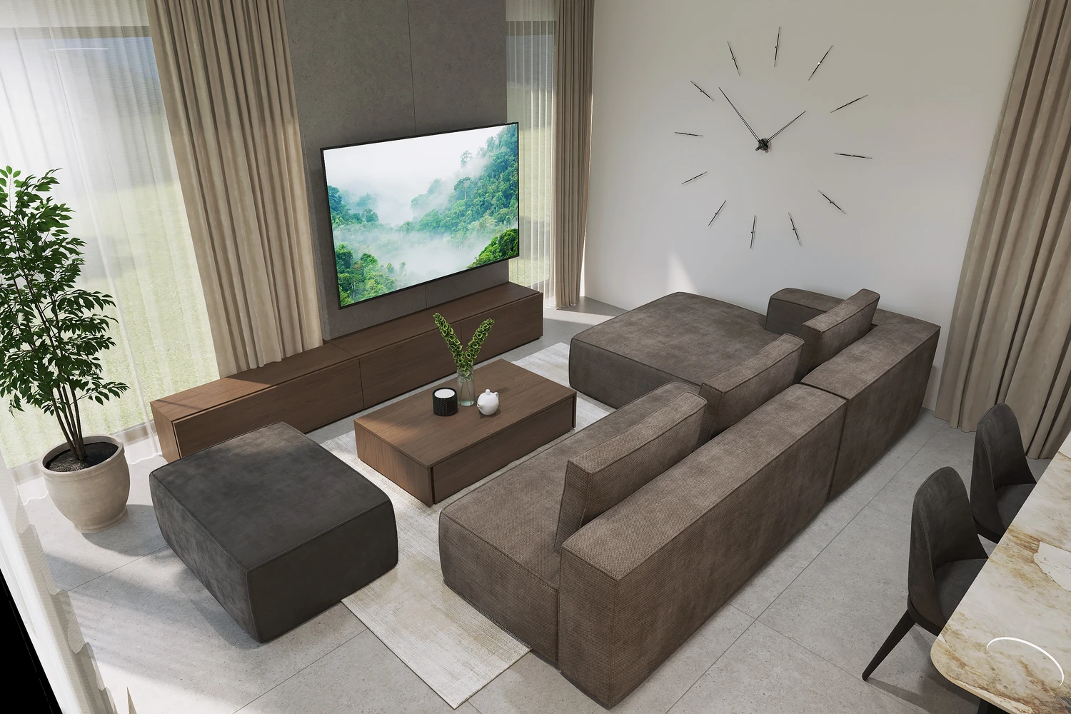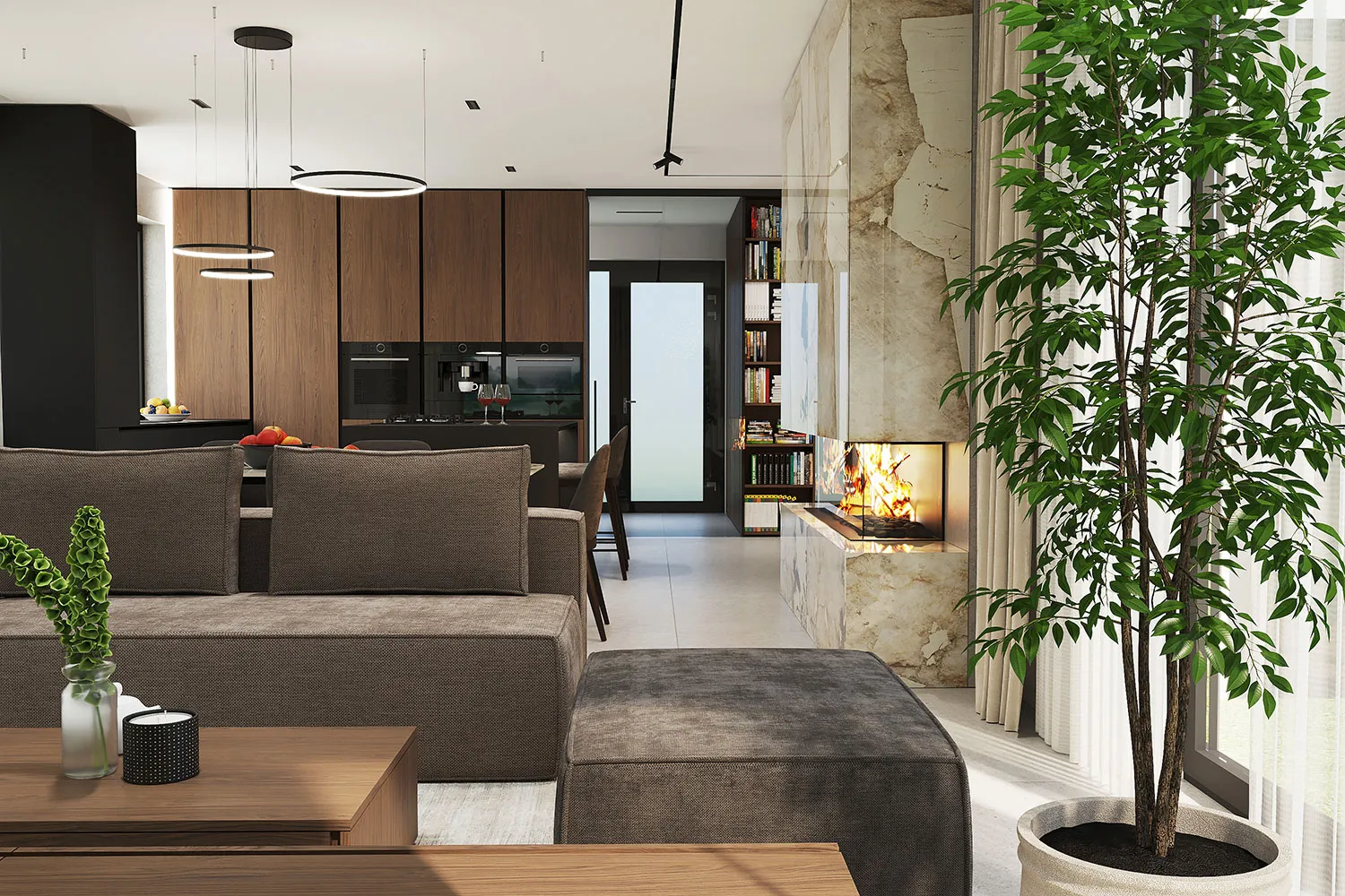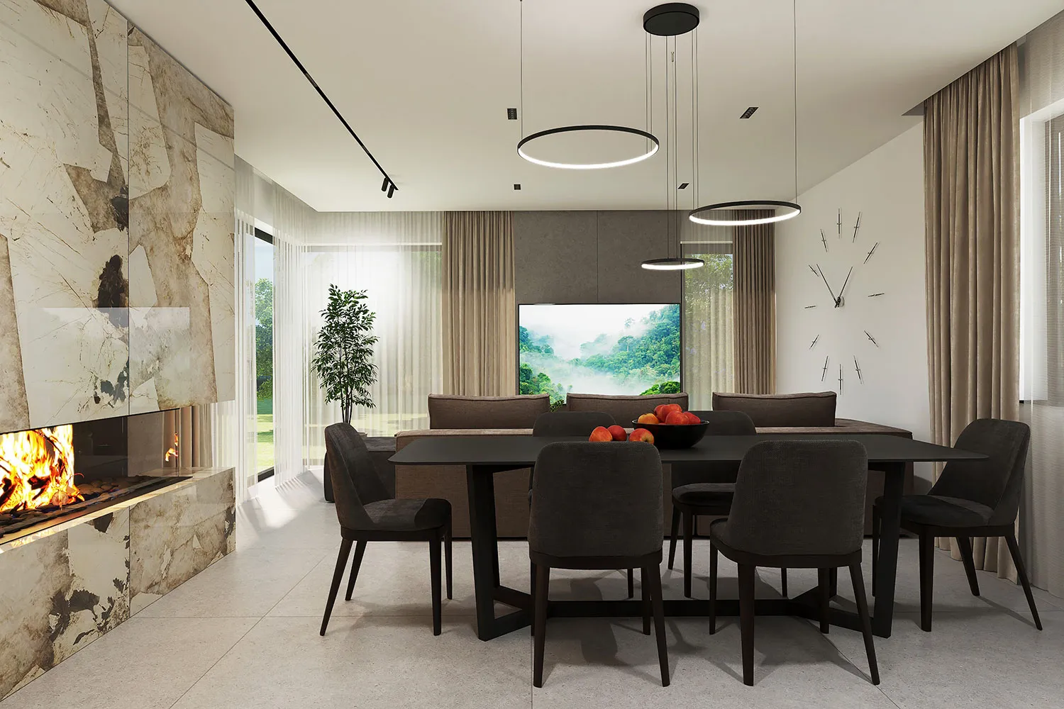 Pozrite si náš moderný interiér domu v komplexe Trnky pri Žiline, kde sme navrhli 128 m² obytnej plochy rozdelenej do desiatich miestností. Tento interiér domu spája štýl a funkčnosť, pričom kladieme dôraz na detaily a individuálne potreby klienta.