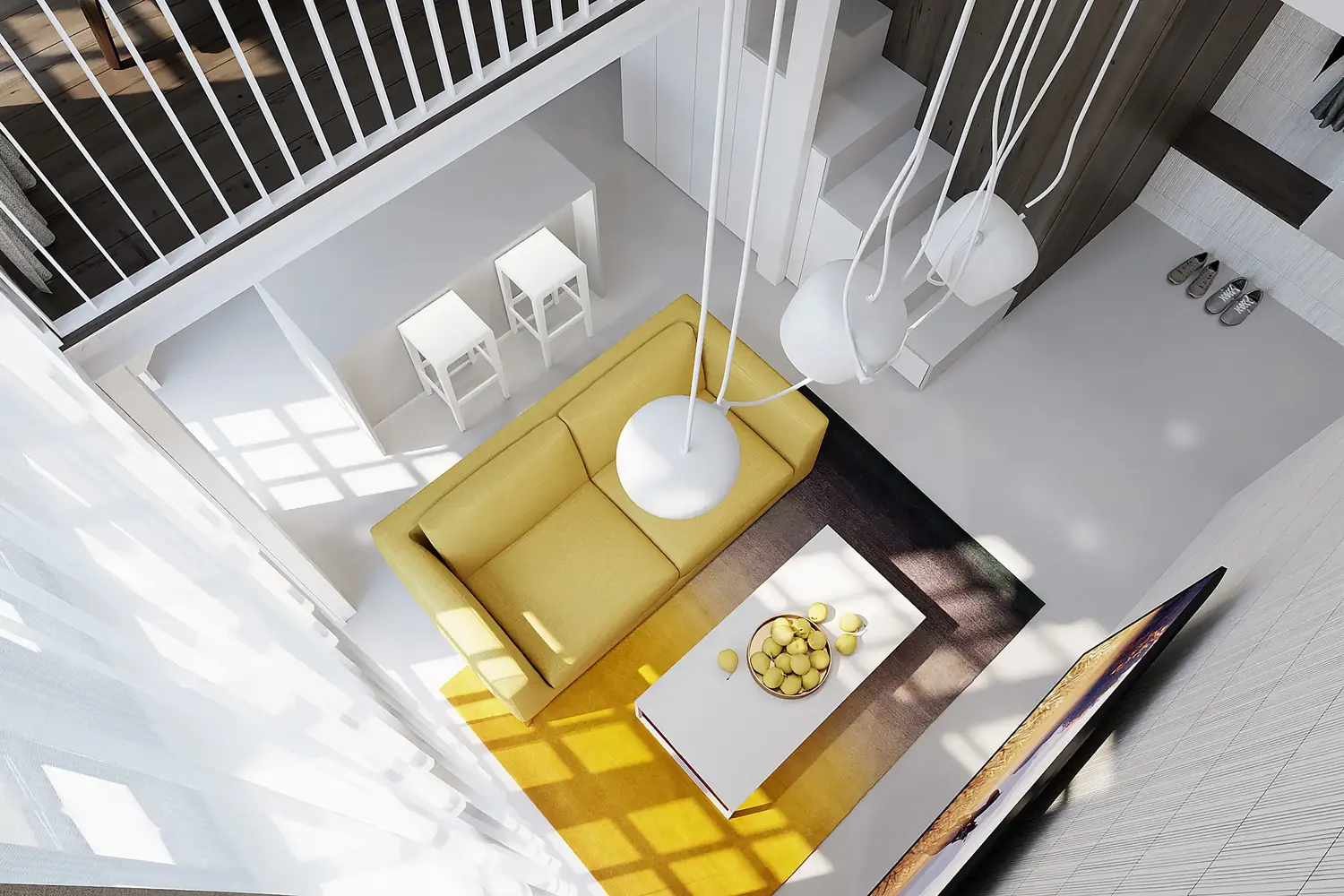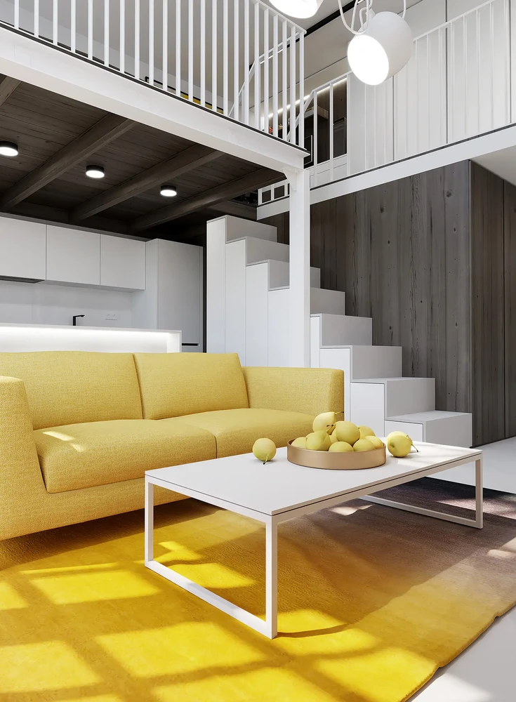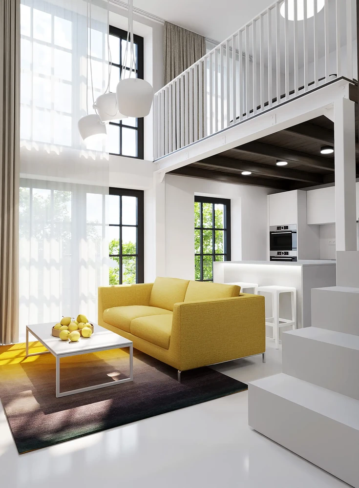 Pri návrhu obývačky v loftovom byte sme kládli dôraz na otvorený priestor, vysoké stropy a priemyselnú estetiku. Použili sme kovové konštrukcie, drevené povrchy, teplé odtiene a minimalistický nábytok, čím sme vytvorili harmonický a vzdušný interiér. Pohovku s jednoduchými líniami, výrazné visiace svietidlá a dlhé závesy na oknách sme zladili tak, aby podčiarkli príjemnú atmosféru. Okná prepúšťajú maximum svetla a vďaka svetlým farbám sme ešte viac umocnili pocit otvorenosti. Okrem toho sme umiestnili obraz či koberec, ktoré celý priestor zútulňujú a dodávajú mu osobitý charakter. Zaujíma vás cena za návrh obývačky?